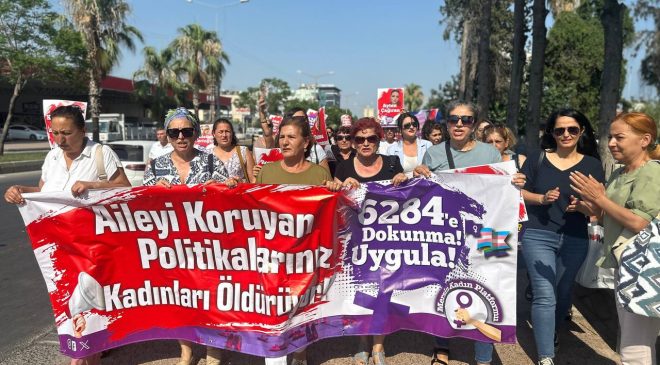 Mersin Kadın Platformu üyelerine, yapılmamış bir eyleme katıldıkları iddiasıyla idari para cezaları gönderildi. Cezalardan biri o gün cezaevinde bulunan Akdeniz Belediyesi Eş Başkanı Nuriye Arslan’a tebliğ edildi. Mersin Kadın Platformu üyelerine, gerçekte yapılmamış bir eyleme katıldıkları iddiasıyla idari para cezaları tebliğ edildi. Cezalardan biri, söz konusu tarihte cezaevinde bulunan Akdeniz Belediyesi Eş Başkanı Nuriye Arslan’a de gönderildi. Şu ana kadar en az 17 kadın, Kabahatler Kanunu’nun 32. maddesi kapsamında “mülki amirin emrine aykırı davranmak” iddiasıyla para cezası tebligatı aldı. Platform temsilcileri, ceza tebligatlarının gelmeye devam ettiğini ve sayının artabileceğini belirtti.…