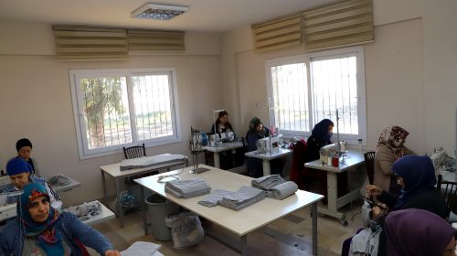 Akdeniz Belediyesi Özgürlük Mahallesi Kültür ve Sanat Evi kursiyeri kadınlar, soğuk havalarla da mücadele eden deprem mağduru vatandaşlara ulaştırılmak üzere, seri şekilde içlik ve fanila üretimine başladı.