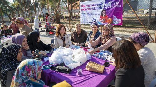 Kadınlar, ‘Elde Var Yetenek, Evde Var Ekmek’ sloganıyla hayata geçirilen ve kadınlara meslek öğretip, kendi evlerinde üretim yapmalarını ve ev ekonomilerine katkı sağlayan projeden duydukları mutluluğu ifade ediyor. ‘Çoraptan Oyuncak’ atölyesine katılan kadınlar, el becerilerini geliştirmenin yanı sıra, sosyalleşme fırsatı da buluyor. Atölye kapsamında anneleri dikiş dikerken, minikler de öğretmenler eşliğinde eğitici oyunlar oynadı.