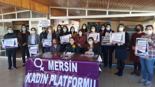 Eğitim Sen’de yaptıkları basın açıklamasıyla 8 Mart haftası etkinlik programını duyuran Mersin Kadın Platformu üyeleri, 2021 yılı 8 Martında yine sokaklarda olacaklarını belirtti. Platform adına açıklamayı okuyan Gülşah Yıldırım Genç, “Biz kadınlar bütün baskıcı, ayrımcı, erkek egemen sisteme karşı umutluyuz, kararlıyız. 2021 yılı 8 Martında yine sokaklarda, alanlarda, bulunduğumuz her mecrada olmaya ve mücadeleyi yükseltmeye devam edeceğiz.” dedi.