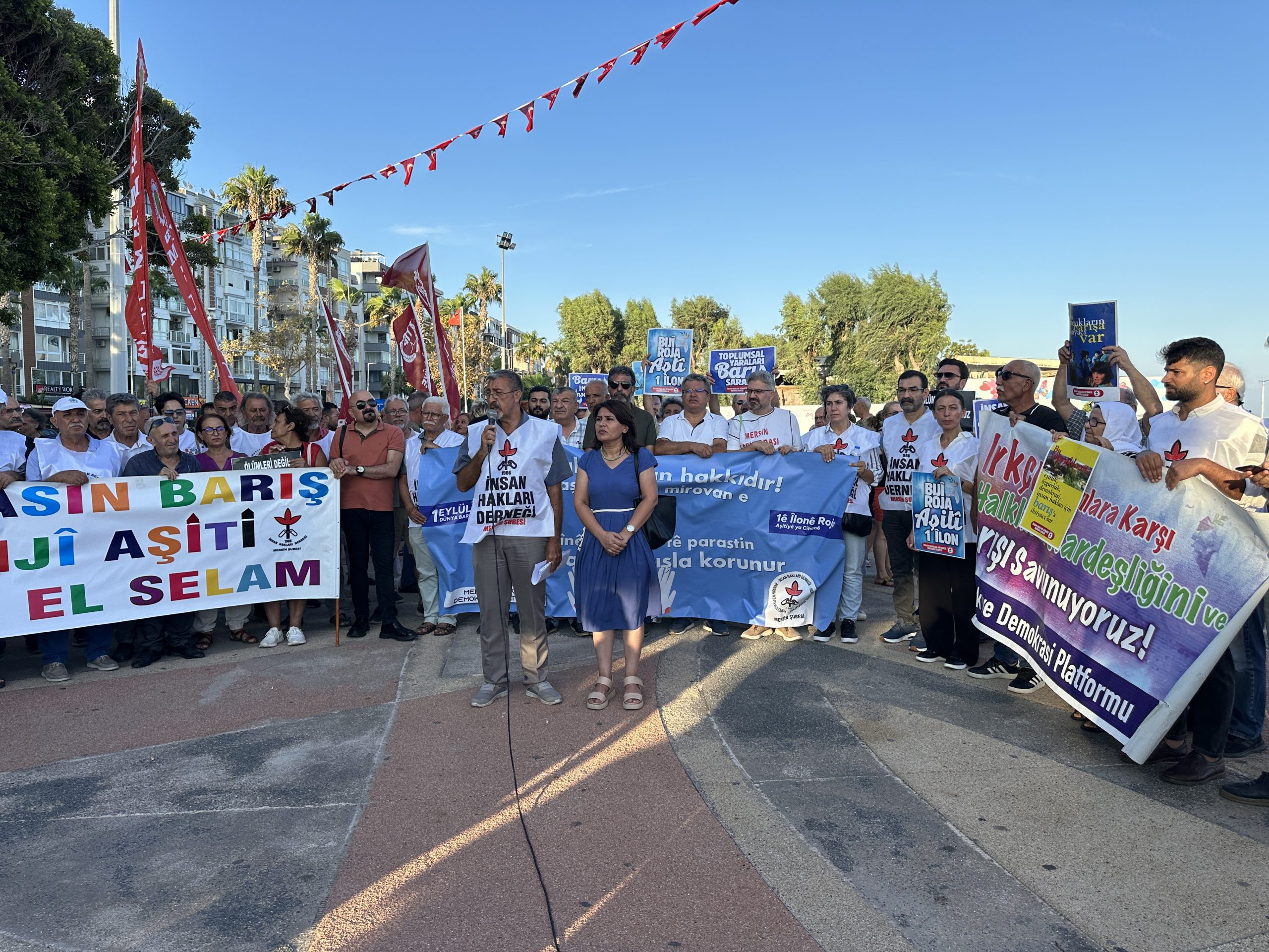 İnsan Hakları Derneği (İHD) Mersin Şubesi ile Mersin Emek ve Demokrasi Platformu, 1 Eylül Dünya Barış Günü sebebiyle etkinlik düzenledi. Özgecan Aslan Meydanında yapılan etkinliğe Akdeniz Belediyesi Eşbaşkanları Nuriye Arslan ile Hoşyar Sarıyıldız, çok sayıda parti ve kurum temsilcileri katıldı.