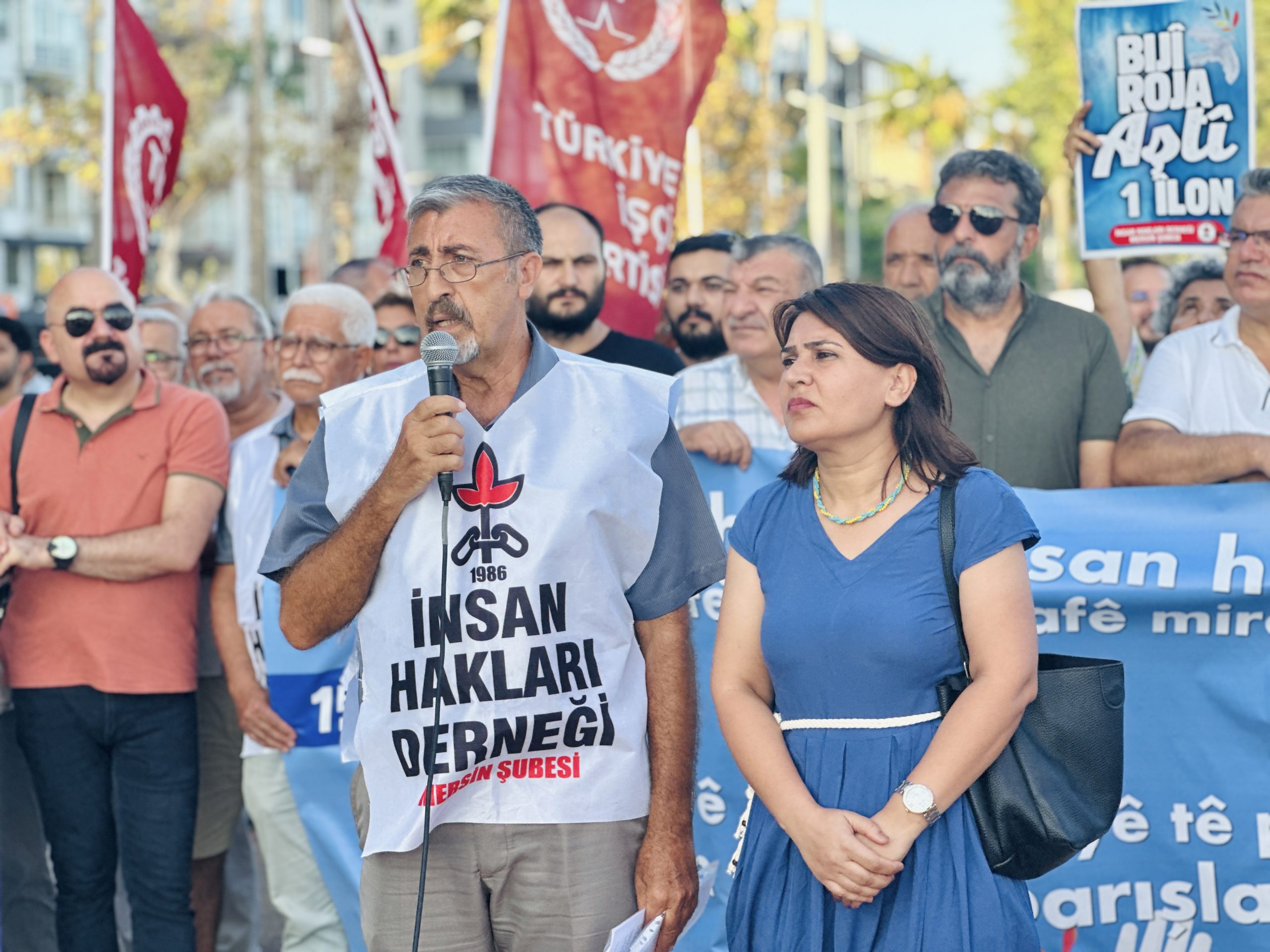 Etkinlik “Barış hakkı insan hakkıdır” yazılı pankartın açıldığı basın açıklamasıyla başladı. Açıklamayı İHD Mersin Şube yöneticileri Bekir Sıtkı Keçeci ile Şükran Aktaş Kürtçe ve Türkçe okudu.
