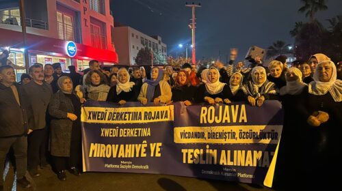 Mersin’de Barış Anneleri ve kadınların öncülüğünde, Suriye Geçici Hükümetinin Halep’te Kürtlere dönük saldırılarına karşı kitlesel bir yürüyüş düzenlendi. Yürüyüşte Rojava’ya dönük saldırıların boşa çıkarılacağı vurgulanırken, uluslararası kamuoyuna sessizliği bozma çağrısı yapıldı.