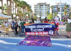 Mersin Kadın Platformu, emniyet güçlerinin kadınlara pandemiyi bahane ederek 100 bin TL’yi aşan para cezaları yazıp ‘tam kapanma’ sırasında kentte yapılan şampiyonluk kutlamalarına izin vermesine “Bizler ölmek istemiyoruz dediğimiz için 100 bin TL’yi aşan para ceza ile durdurulmaya çalışılırken bu ülkede kalabalık bayram namazları teşvik edildi, şampiyonluk kutlamaları emniyet güçlerince keyifle izlendi” diyerek tepki gösterdi. Haber- Fatoş Sarıkaya Mersin Kadın Platformu ‘İstanbul Sözleşmesi’nden vazgeçmiyoruz’ nöbet eyleminin 6. Haftasında 100 bin TL’yi aşan para cezalarına rağmen sokaklarda olup “Hayatlarımızdan ve haklarımızdan vazgeçmiyoruz” dediler. Cumhurbaşkanlığı kararı ile İstanbul Sözleşmesi’nin 1 Temmuz’da sona…