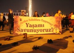 Mersin’de kadınlar “Evlerden sokaklara taşıyoruz, yaşamı savunuyoruz” diyerek alanlara inip erkek şiddetine karşı isyanlarını haykırdılar. Kadınlar, kendilerine reva görülen dört duvarı kabul etmediklerini söyleyerek “Ne taktığımız maskeler ne de aramıza giren fiziksel mesafeler kız kardeşlik bağlarımızı zayıflatamayacak. Her yıl olduğu gibi bu 25 Kasım’da da el ele olamasak da yan yanayız. Erkek şiddetine ve patriyarkal düzene karşı birbirimizden aldığımız güçle dayanışmayı yükseltecek, eşit ve özgür bir hayatı kuracağız.” şeklinde konuştular. Mersin Kadın Platformu, 25 Kasım Kadına Yönelik Şiddete Karşı Uluslararası Dayanışma ve Mücadele Günü sebebiyle Forum durağı yanındaki alanda eylem…