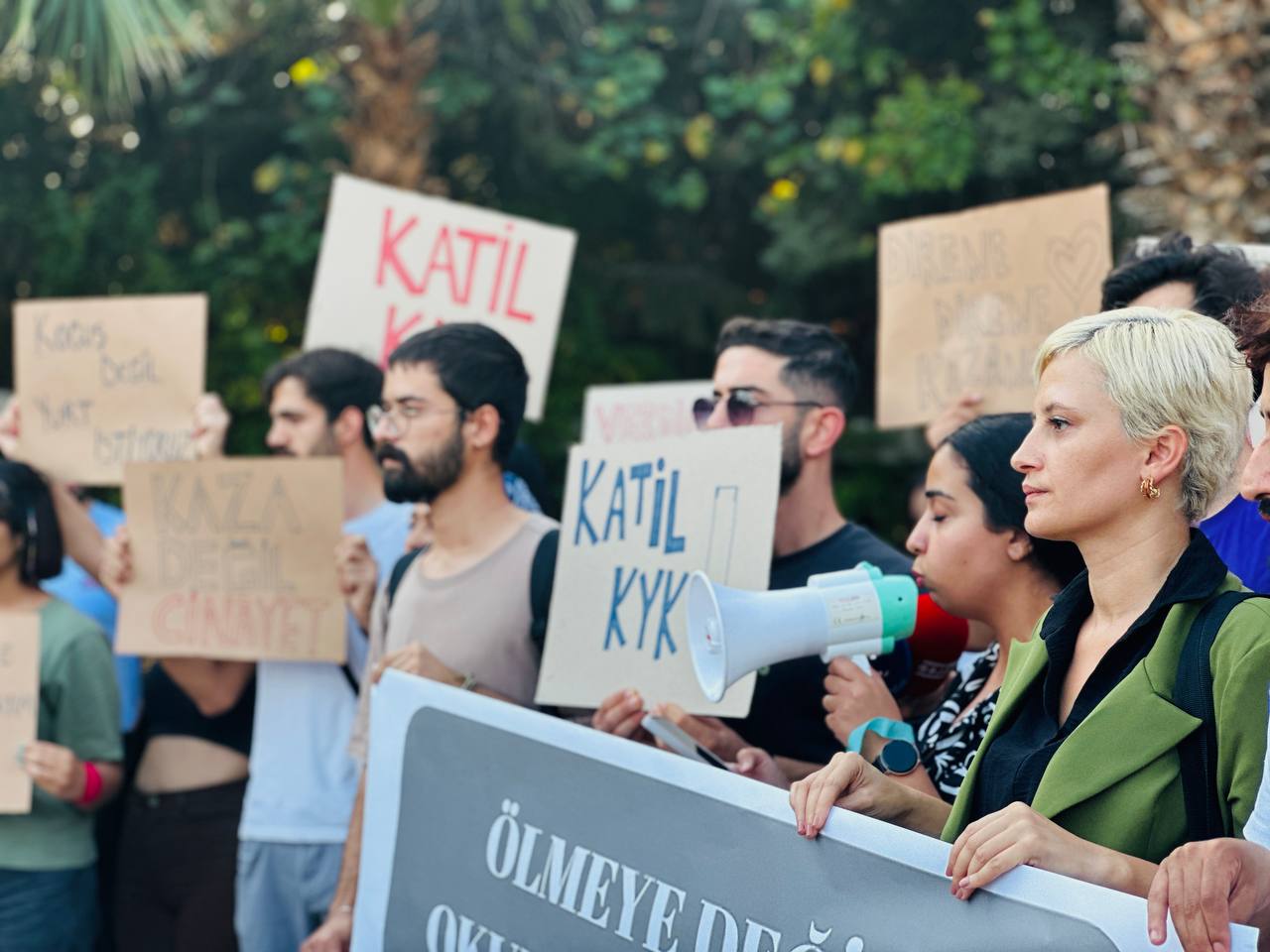 Mersin Üniversitesi öğrencileri, Aydın KYK Güzelhisar Kız Öğrenci Yurdu’nda arızası giderilmeyen asansörde hayatını kaybeden Zeren Ertaş için üniversitede eylem yaptı.