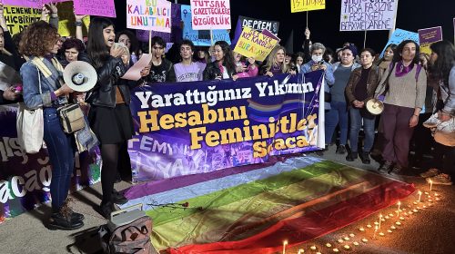 Bu yıl 9’uncusu düzenlenen Mersin Feminist Gece Yürüyüşü kadın ve LGBTİ+’ların katılımıyla Kushimoto sokağında gerçekleştirildi. “Yarattığınız yıkımın hesabını feministler soracak” ve “Yaşamı dayanışmayla yeniden kuracağız” yazılı pankartların taşındığı yürüyüşte sık sık “Hükümet istifa” sloganı atıldı. Kadınlar aynı zamanda depremde hayatını kaybedenleri anmak adına meydanda mum yaktı.